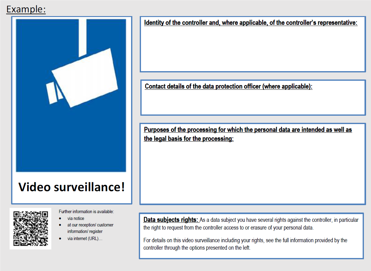 A completamento dell’informazione, forniamo la bozza del cartello contenuto nelle linee guida del Comitato Europeo per la Protezione dei Dati (EDPB)